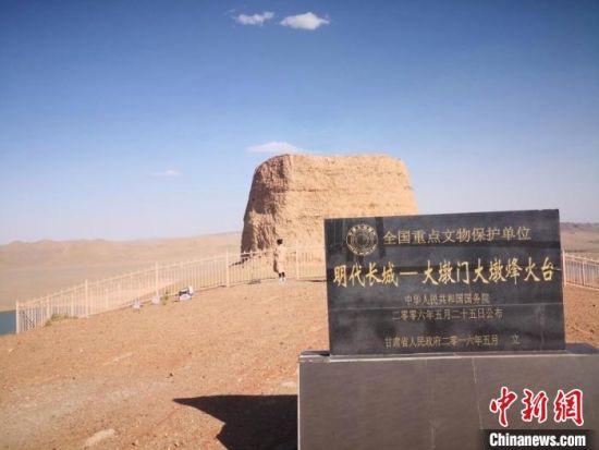 圖為位于甘肅酒泉市金塔縣境內(nèi)的全國重點(diǎn)文物保護(hù)單位——大墩門大墩明長城烽燧。(資料圖) 馮志軍 攝