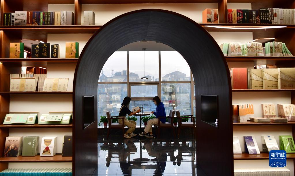 讀者在敦煌書(shū)局內(nèi)看書(shū)(4月21日攝)。新華社記者 陳斌 攝
