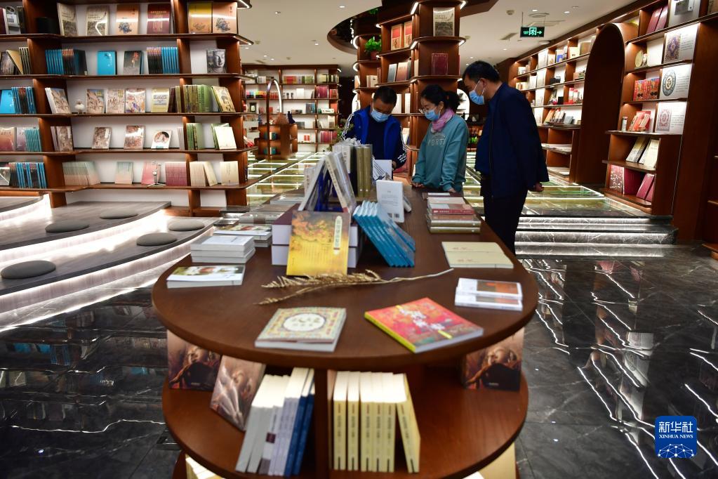 讀者在敦煌書(shū)局挑選書(shū)籍(4月21日攝)。新華社記者 陳斌 攝