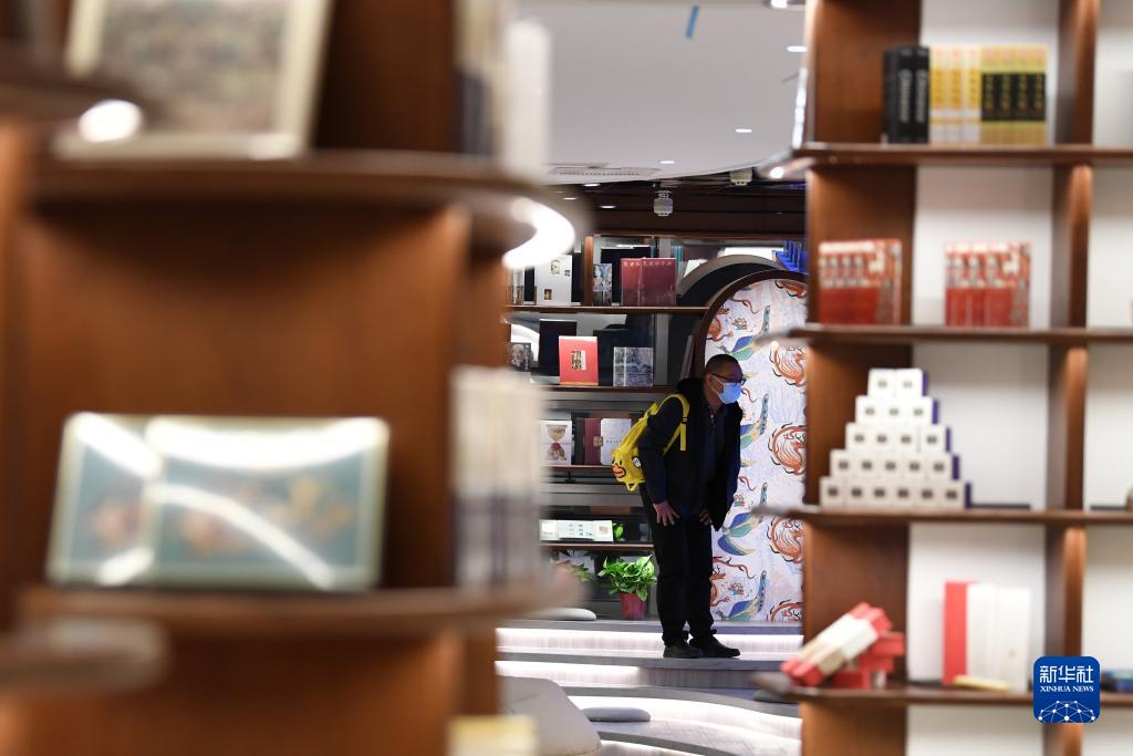 讀者從敦煌書(shū)局的書(shū)架旁走過(guò)(4月21日攝)。新華社記者 陳斌 攝