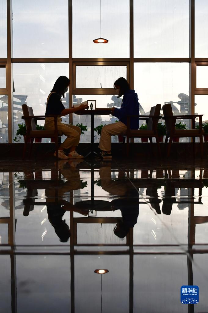 讀者在敦煌書(shū)局閱讀區(qū)看書(shū)(4月21日攝)。新華社記者 杜哲宇 攝