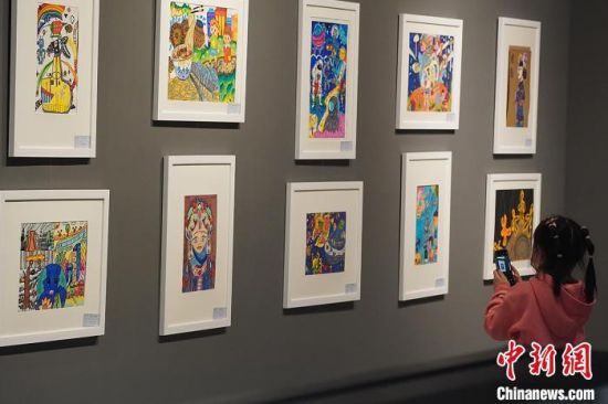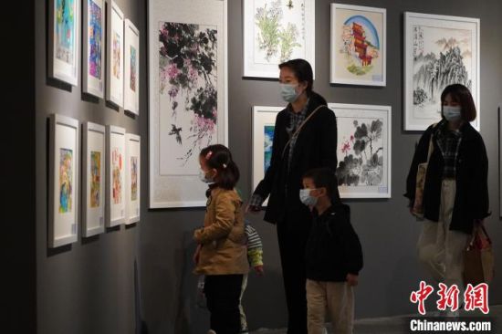 5月15日,甘肅蘭州,市民參觀少兒美術(shù)展覽。當日,不少市民和游客來到甘肅省博物館參觀,樂享周末時光。九美旦增 攝