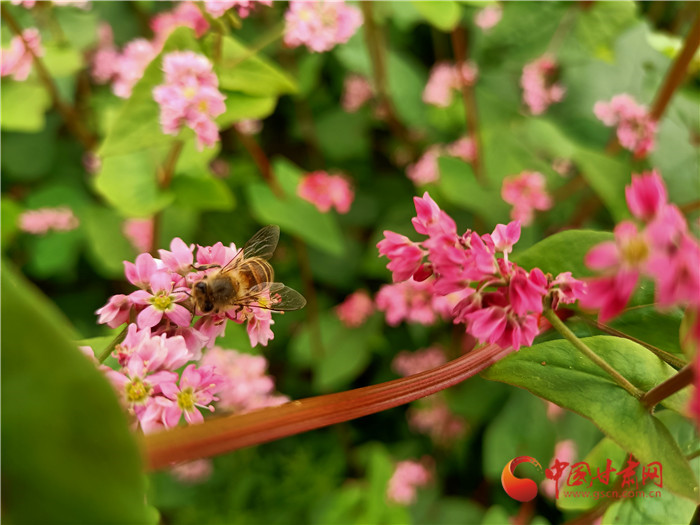 秋色漸濃,位于榆中縣甘草店鎮(zhèn)郭家灣村的蕎麥花兒開的正艷。