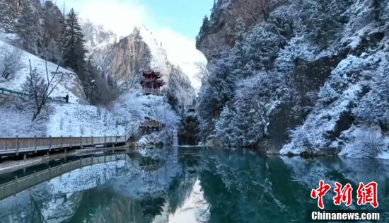 航拍甘南大峪溝雪景,銀裝素裹美如畫(huà)。(卓尼縣融媒體中心 供圖