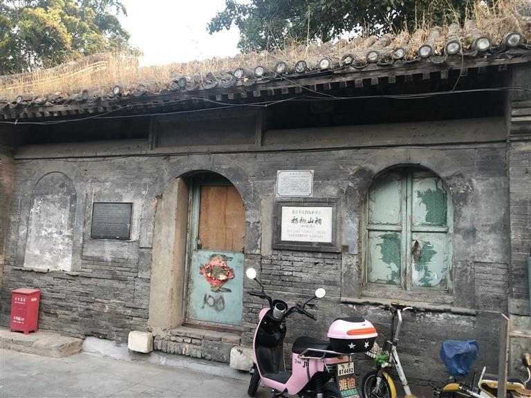 就是在這個胡同里,我看到一個歇山式屋頂?shù)姆课荩严喈?dāng)?shù)钠茢?,屋頂上長滿了凄凄荒草,門窗皆已破爛不堪。但是門旁的墻壁上卻鑲嵌著一塊匾,近前一看,上面寫著“楊椒山祠”。喲,這就是楊椒山在北京的祠。