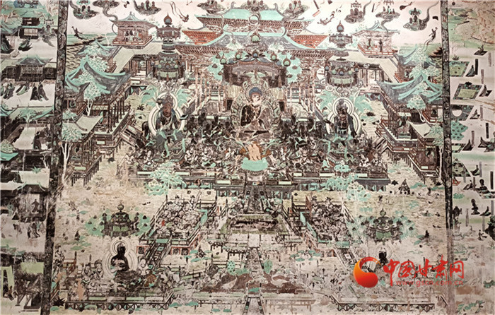 莫高窟735個(gè)洞窟和窟內(nèi)4.5萬(wàn)平方米壁畫,2000多尊彩塑,以其悠久的歷史,宏大的規(guī)模,豐富的內(nèi)涵見(jiàn)證了古印度、古希臘、古波斯等多元文明的交流融匯,見(jiàn)證了漢民族與吐蕃、回鶻、黨項(xiàng)等多民族的和諧共處,見(jiàn)證了中國(guó)社會(huì)生活的豐富多彩,彰顯出多元文明和諧共生、美美與共、生機(jī)勃勃的萬(wàn)千氣象。