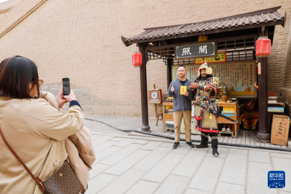 “關(guān)照”可理解為古時(shí)候的“護(hù)照”。嘉峪關(guān)的游客可以買(mǎi)上一份文創(chuàng)產(chǎn)品“關(guān)照”,聽(tīng)“關(guān)長(zhǎng)”李森宣告自己“合法通關(guān)”,模擬一場(chǎng)告別故土、前往西域的出關(guān)儀式。