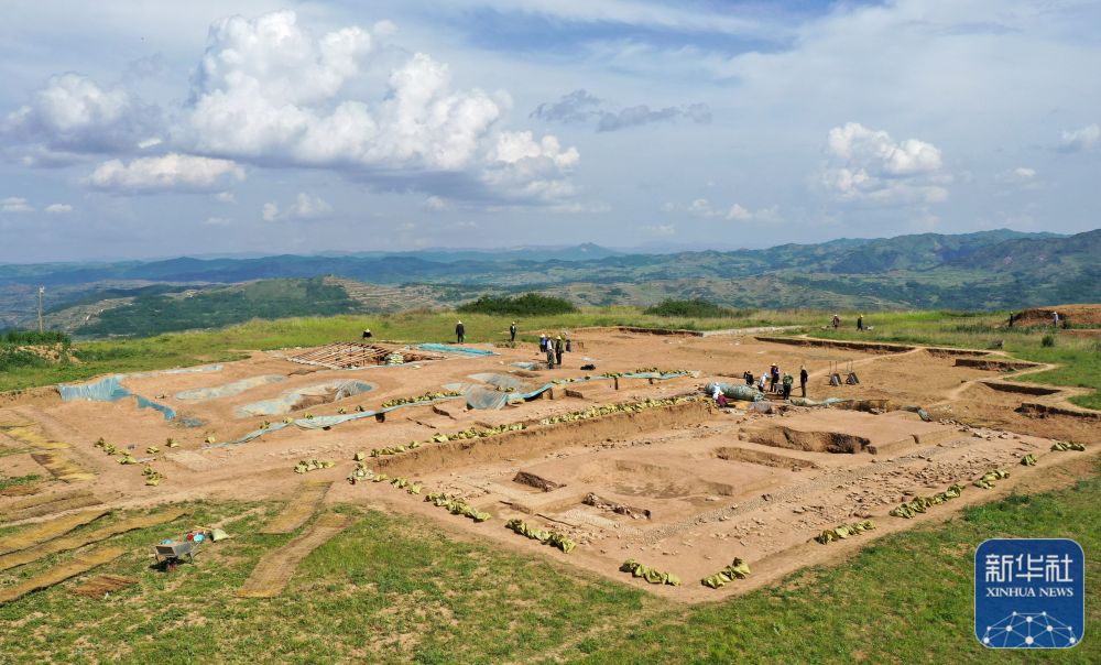 這是2022年6月10日拍攝的甘肅省隴南市禮縣四角坪遺址考古發(fā)掘現(xiàn)場(chǎng)(無(wú)人機(jī)照片)。新華社記者 郎兵兵 攝