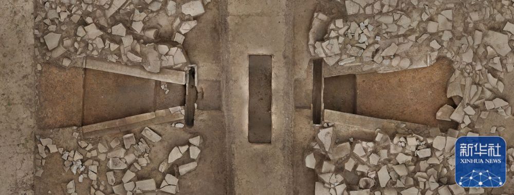 這是甘肅省隴南市禮縣四角坪遺址的排水設(shè)施(2024年1月8日攝,無(wú)人機(jī)照片)。新華社發(fā)(四角坪遺址考古隊(duì)供圖)