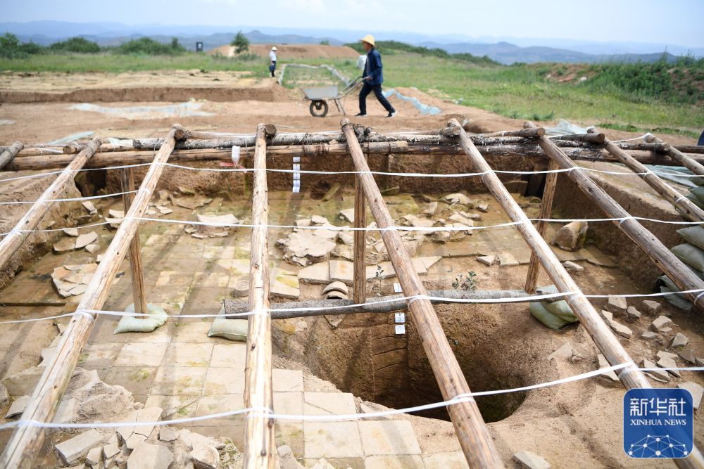 這是2022年6月10日拍攝的甘肅省隴南市禮縣四角坪遺址考古發(fā)掘現(xiàn)場(chǎng)。