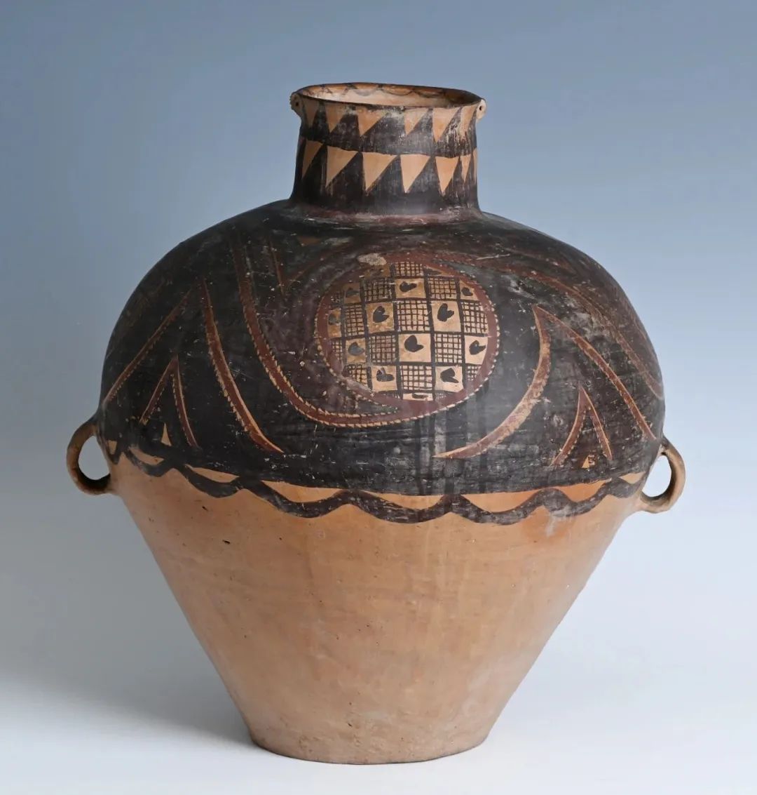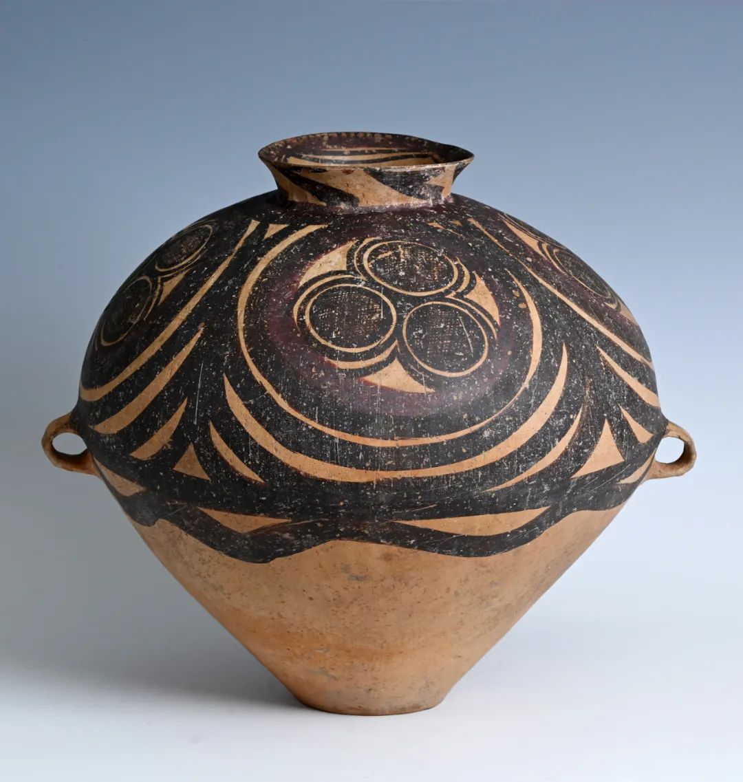 馬家窯文化創(chuàng)造了大批彩陶藝術(shù)精品,被譽為新石器時代彩陶之冠。形式優(yōu)美的漩渦紋是馬家窯類型的典型代表作,精美的半山類型彩陶又被公認(rèn)為馬家窯文化的巔峰階段,這一時期的彩陶器形勻稱圓潤,紋樣采用黑紅兩色繪制,更加繁麗精致,器具造型和圖案渾然一體,給人帶來賞心悅目的美感享受。