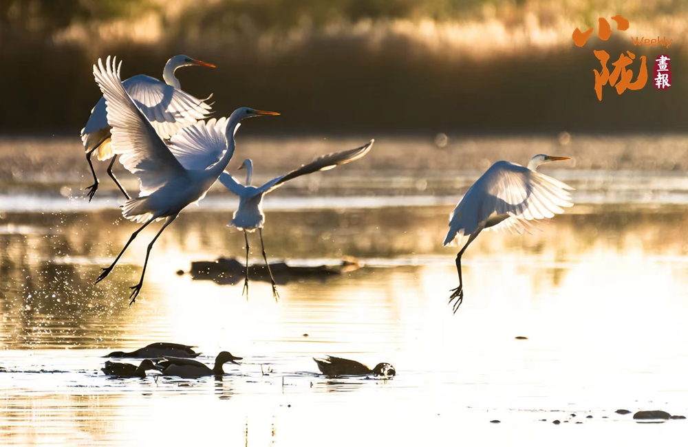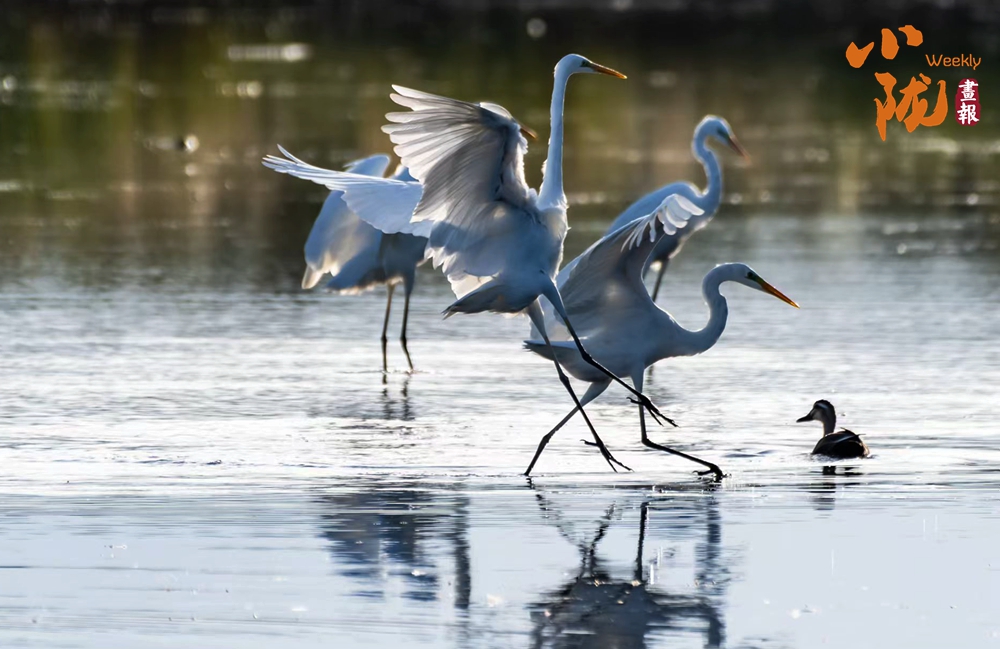 湖中的白鷺翩翩起舞,嬉鬧翻飛,歡快鳴叫,有的停落湖岸,有的游向湖心,有的翻飛空中,為游客帶來(lái)無(wú)盡的歡樂(lè)。看鳥(niǎo)兒們嬉鬧,仿佛回到童年時(shí)代。自由、自在、生機(jī)無(wú)限,讓每個(gè)人感受到無(wú)窮的生命力量。