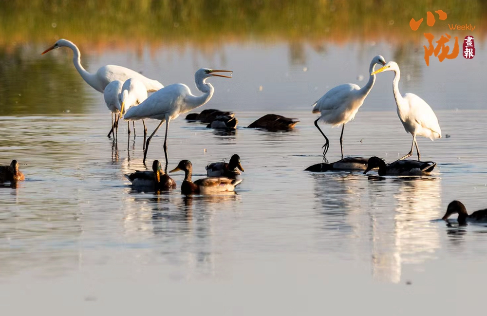 春天,這里萬(wàn)物復(fù)蘇,蘆葦新綠,候鳥(niǎo)歸來(lái),整個(gè)公園充滿(mǎn)生機(jī)。它們依水而居,或在水中游泳和潛水,或在淺水、灘地與岸邊涉行,或在其上空飛行,引得游人們駐足觀看,構(gòu)成一幅人與自然和諧共生的生態(tài)畫(huà)卷。