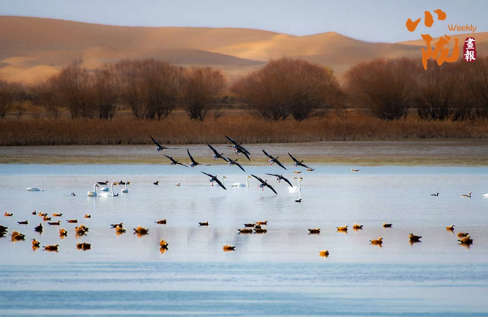 鳥(niǎo)類(lèi)是濕地生態(tài)系統(tǒng)中最活躍、最引人注目的組成部分,也是監(jiān)測(cè)濕地生態(tài)狀況變化的一項(xiàng)客觀生物指標(biāo)。近年來(lái),張掖國(guó)家濕地公園生態(tài)得到持續(xù)改善,使得濕地動(dòng)物明顯增加,黑鸛、大天鵝、熊貓鴨、大白鷺等都是濕地公園的???,構(gòu)成祁連山下田野村莊一道亮麗風(fēng)景。