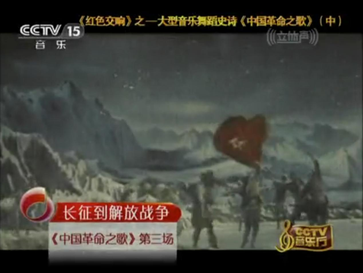 《紅軍不怕遠(yuǎn)征難》作為《中國(guó)革命之歌》中長(zhǎng)征主題片段,突破了單一形式局限,融合演唱、交響樂(lè)、舞蹈、布景、光影、朗誦與歷史影像,打造出立體視聽(tīng)效果。作品在宏大敘事中加入戰(zhàn)士互助、風(fēng)雪行軍等細(xì)膩細(xì)節(jié),強(qiáng)化人物情感與精神刻畫(huà),打破傳統(tǒng)敘事框架,為平衡歷史真實(shí)與藝術(shù)審美提供了獨(dú)特范本。