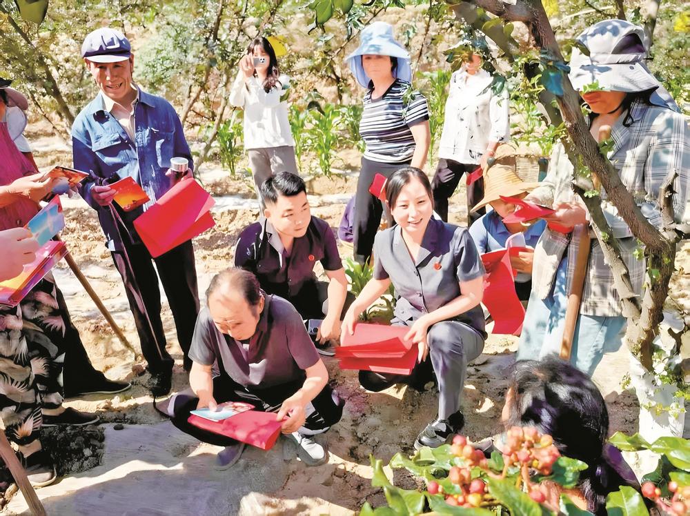 安化法庭干警走進花椒種植園,與村民圍坐交流,現(xiàn)場答疑解惑。 武都區(qū)法院供圖