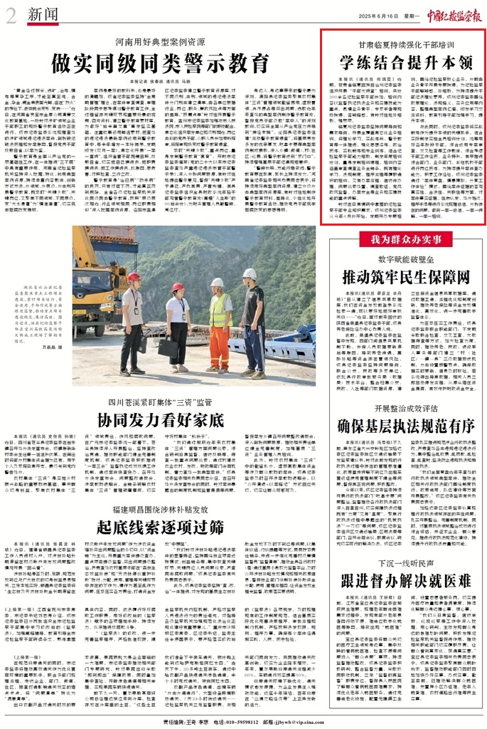 - 2025-06-06中國紀檢監(jiān)察報:蘭州持續(xù)提升干部實戰(zhàn)本領 學用結合促履職