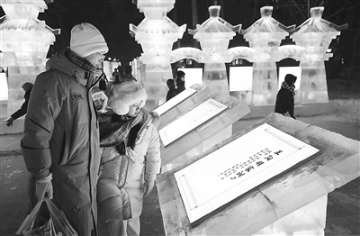 黑龍江省哈爾濱市依托冰雪文化資源創(chuàng)建廉潔品牌,打造含有清廉元素的冰雪景觀園,讓市民游客在賞冰樂雪的同時(shí)受到廉潔文化的浸潤。圖為市民在冰雪景觀前駐足。 劉萌 攝