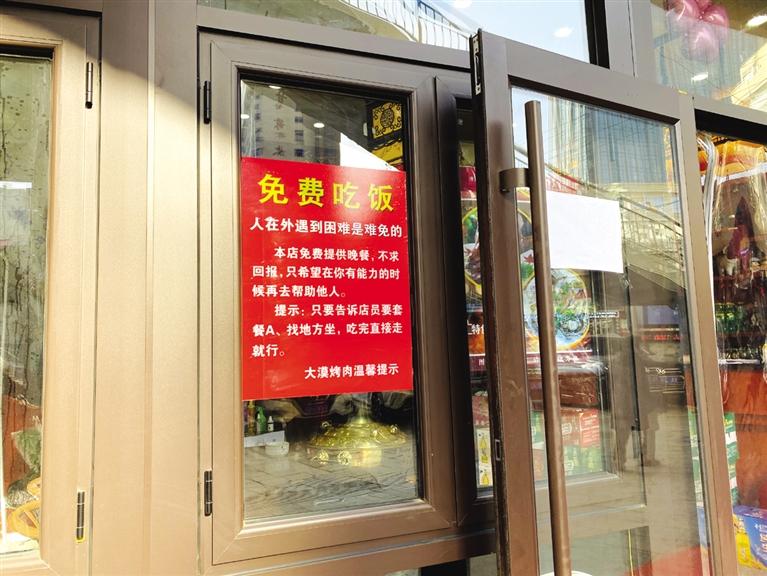“更讓我感動的其實是大家。我們貼出‘溫馨提示’以來,沒有人故意上門蹭吃蹭喝,更沒有人上門搗亂。大家都在小心翼翼地保護著這份善心。”丁占東說,1月18日當天,又有兩位身處窘境的人看到提示走進了店門。丁占東和同事們依然給他們端來了熱飯熱菜,請他們吃了頓飽飯。