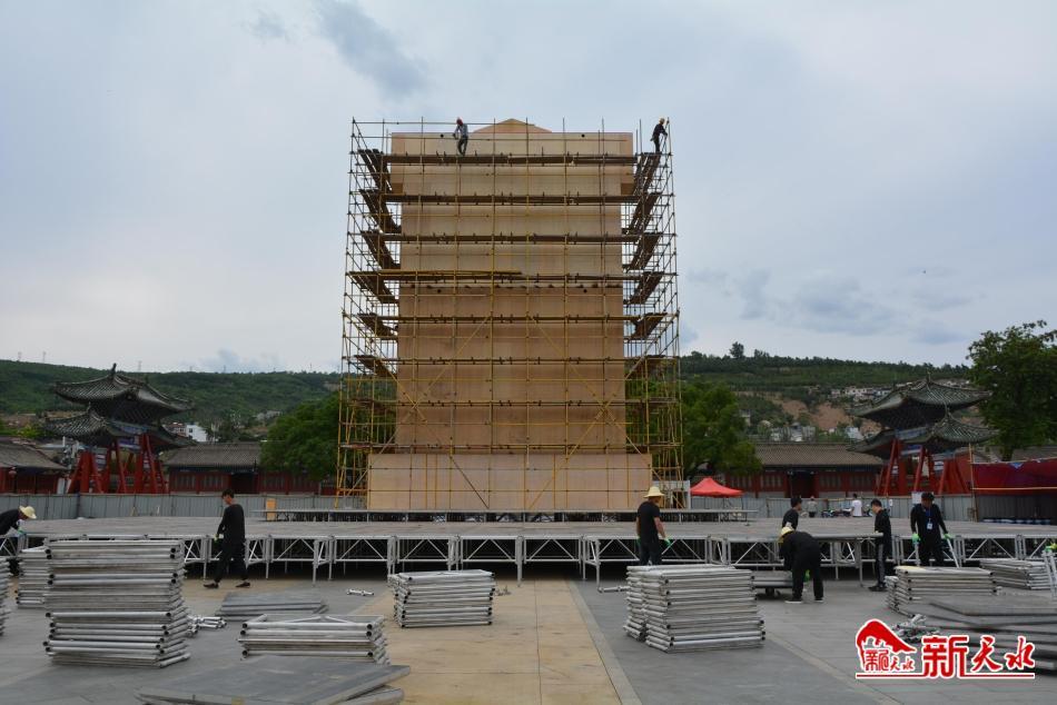 天水市文化旅游投資發(fā)展有限責任公司總經(jīng)理景延峰告訴記者,他們主要負責公祭伏羲大典文化豐碑的搭建以及伏羲廣場周邊和外圍環(huán)境的美化和亮化工程。5月12日開始進場施工,目前伏羲文化豐碑主體已經(jīng)搭建完成,各項工作都在有序推進。下一步將進行豐碑文化浮雕的安裝,伏羲路四個花籃的修復和裝飾、美化,道旗和舞臺的重新翻修,以及鮮花布置等工作,預計所有工作在6月15日全部完成到位。