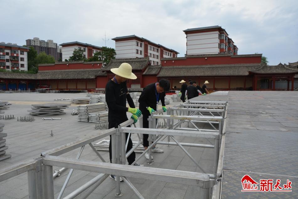 新天水訊【記者何慧娟 張彬霞】2023(癸卯)年公祭中華人文始祖伏羲大典將于6月22日舉行。日前,記者來到伏羲廟廣場看到,公祭伏羲大典文化豐碑矗立在藍天白云下,看起來雄渾壯麗,主舞臺搭建,旗桿、旗墩翻新等工作正有序開展,施工現(xiàn)場一派繁忙景象。