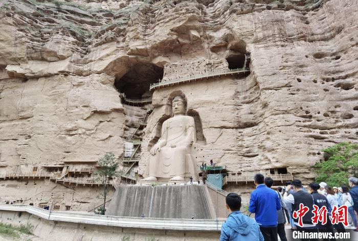 游客到訪參觀甘肅炳靈寺石窟。中新社記者 馮志軍 攝