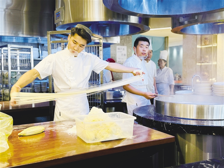 百舸爭流,千帆競渡。當(dāng)下,蘭州牛肉拉面行業(yè)紛紛在提質(zhì)升級,更新迭代。近段時間以來,蘭州牛肉拉面行業(yè)的后起之秀——周達(dá)·觀金城精品牛肉面店成為不少市民游客網(wǎng)紅打卡地標(biāo)。目前蘭州市內(nèi)有牛肉拉面館1280余家,周達(dá)·觀金城精品牛肉面品牌于三年前確立,短短的三年時間里,它是怎么做到在眾多牛肉拉面店中脫穎而出的?它到底有什么特色?和蘭州其他的老字號牛肉拉面到底有什么不一樣?優(yōu)勢在哪里?帶著這一系列的疑問,8月28日,記者走進周達(dá)·觀金城精品牛肉面店一探究竟。