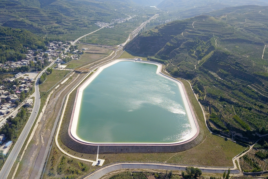 這是在天水市拍攝的已投用的天水城區(qū)引洮供水工程楊家灣調(diào)蓄水池(無人機(jī)照片)。新華社記者范培珅攝