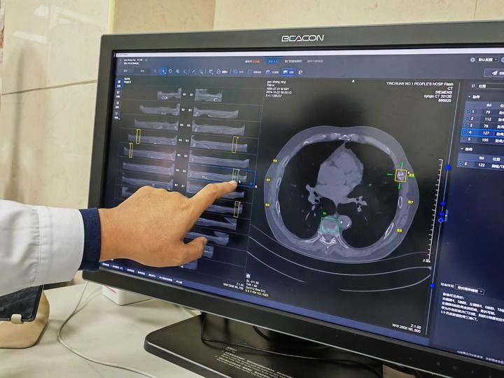 在寧夏回族自治區(qū)銀川市第一人民醫(yī)院,放射科副主任醫(yī)師姜榮興打開(kāi)電腦上的人工智能輔助診斷系統(tǒng),導(dǎo)入病患CT影像資料后,輕點(diǎn)鼠標(biāo),系統(tǒng)瞬間完成初篩——24根肋骨逐一呈現(xiàn)在屏幕上,骨折和疑似骨折的部位一目了然。醫(yī)生再對(duì)初篩結(jié)果作出診斷處理,全程用時(shí)不到4分鐘。