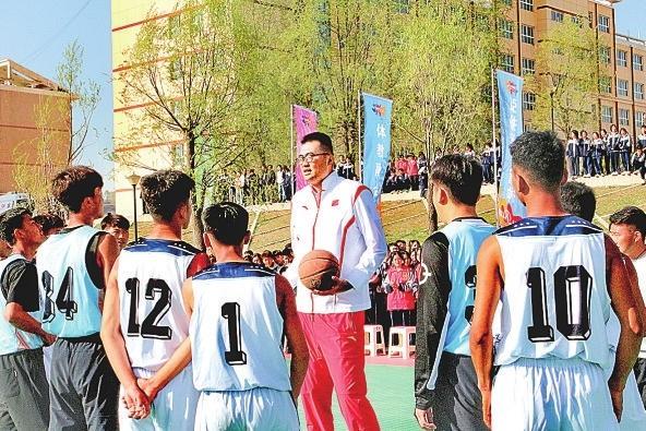男籃前國手張兆旭在積石山與學生互動交流。
