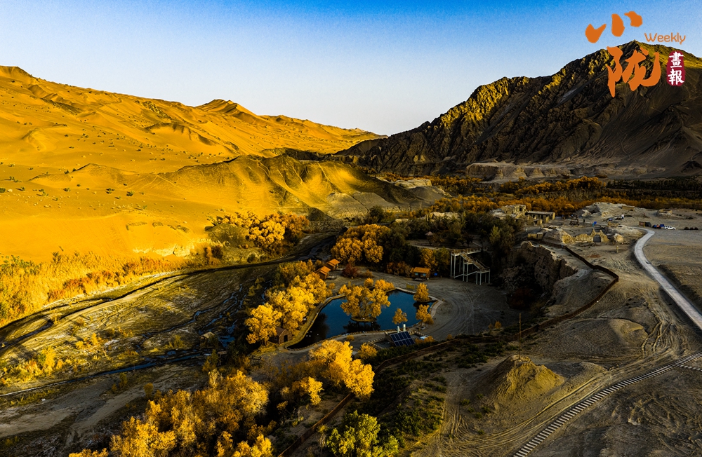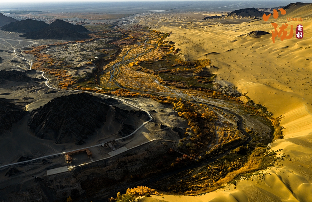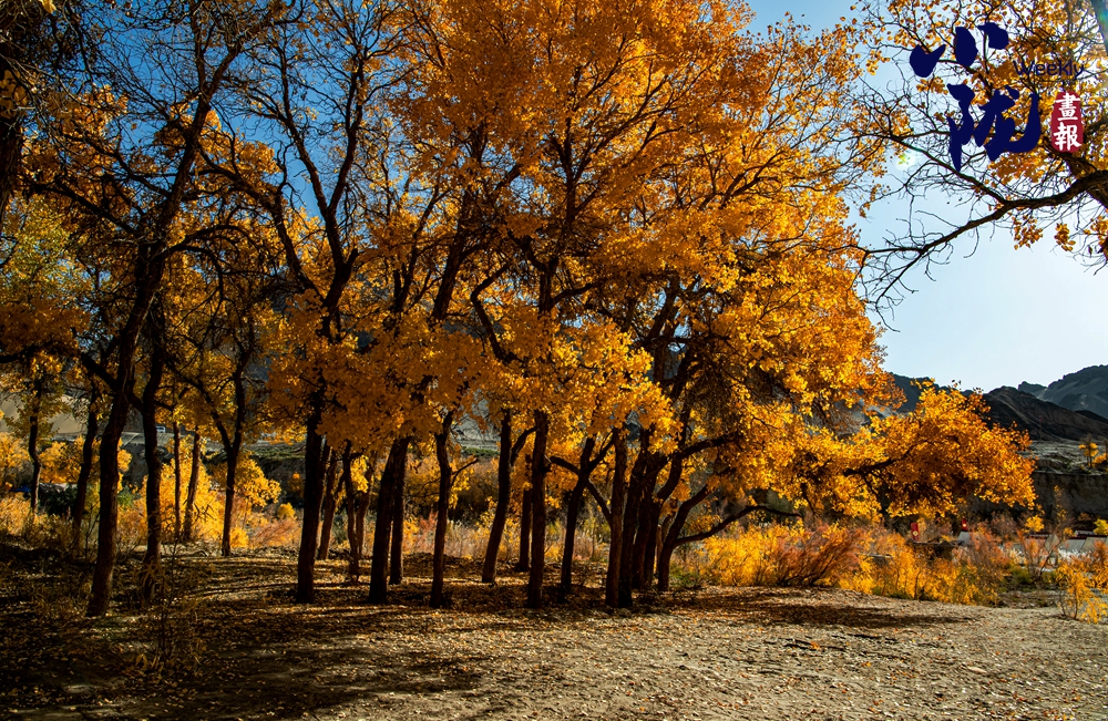 每年10月下旬,是多壩溝胡楊峽胡楊的最佳觀賞期。金黃色的胡楊,與周邊沙山、溪流交織成色彩斑斕的景觀,形成荒漠地帶獨(dú)特的生態(tài)畫卷。