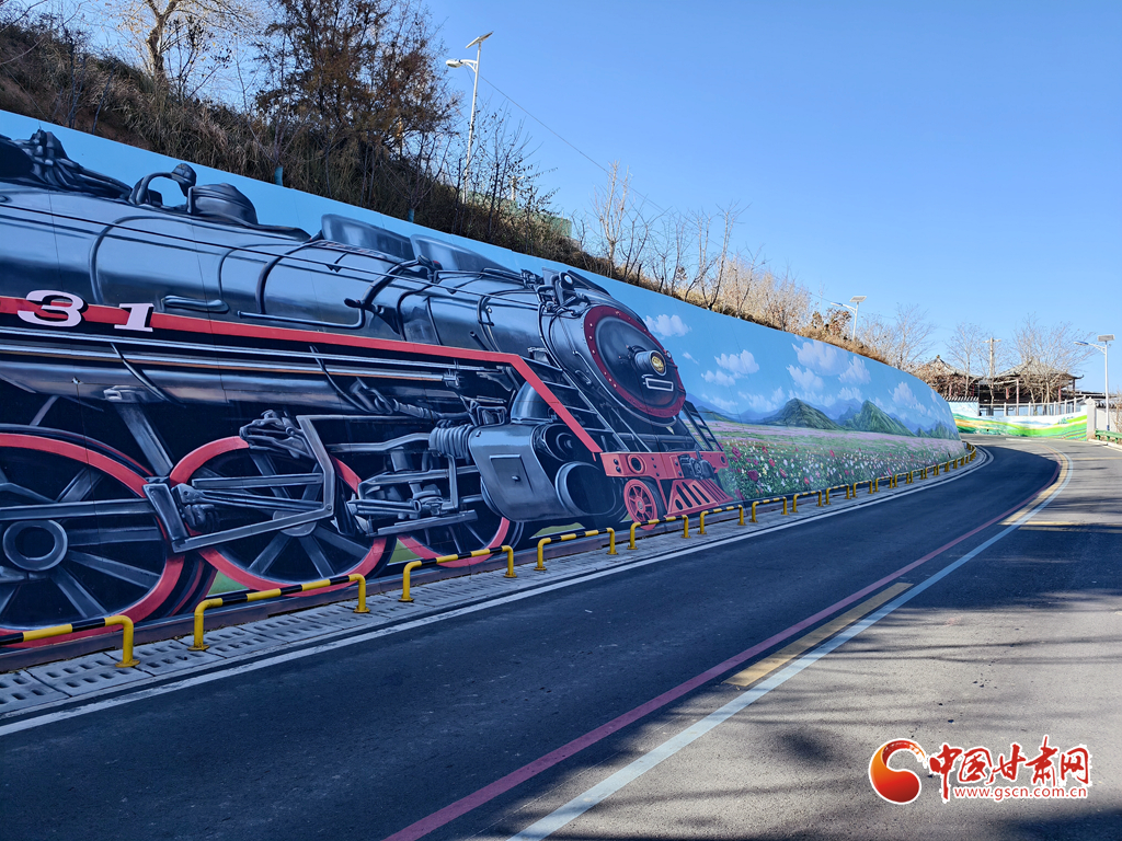 初冬蘭州蘭山,涼意漸濃,“煙雨蘭山”鄉(xiāng)村振興示范帶的童話彩繪卻讓這里成了市民的“造夢秘境”。低成本的藝術(shù)改造點(diǎn)亮墻面,連“0931號”蒸汽火車手繪也在此煥發(fā)光彩——車頭暖光里,Q版蘭州瓜果、土撥鼠串聯(lián)成列,宛如“童話專列”載著鄉(xiāng)愁與特產(chǎn)故事,邀人走進(jìn)山間童話。