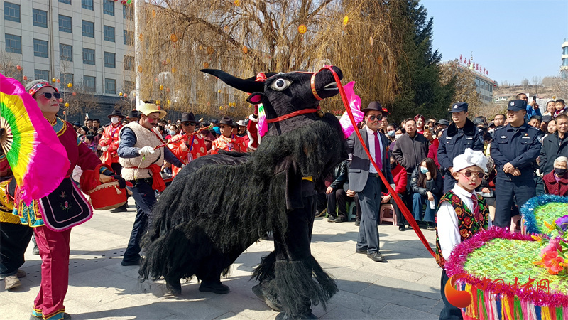 2026年正月十三,和政縣城再度因秧歌沸騰。6支秧歌隊(duì)齊聚展演,旱船搖曳、高蹺翩躚、舞獅騰躍、春牛歡騰,街巷人頭攢動(dòng)、歡聲如潮。這場年度非遺盛會,既是傳統(tǒng)儀式的當(dāng)代復(fù)現(xiàn),也是文化根脈的集體喚醒。從民間自發(fā)組織到政府引導(dǎo)保護(hù),從家族口傳身授到系統(tǒng)化傳承推廣,和政秧歌始終保持原生質(zhì)感,不事雕琢、貼近生活,成為連接歷史與當(dāng)下的文化紐帶。
