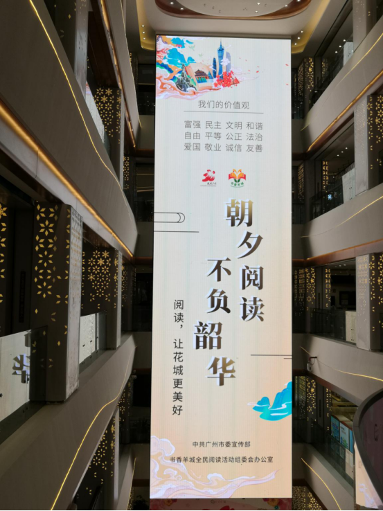 2020廣州讀書月以“朝夕閱讀不負(fù)韶華”為主題,廣州塔、花城廣場、北京路、流花展貿(mào)中心、廣州圖書館、廣州購書中心、廣州各大新華書店、廣州地鐵、廣州報(bào)刊亭等場所,紛紛以亮燈或張貼主題海報(bào)的形式,營造濃厚的閱讀氛圍,讓閱讀力量無處不在、溫暖人心、提振信心。