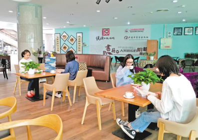 廣州中醫(yī)藥大學里的悅讀中醫(yī)書吧為同學們提供了舒適的閱讀氛圍。