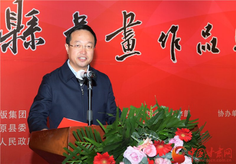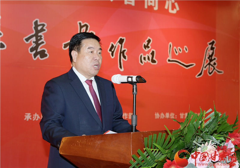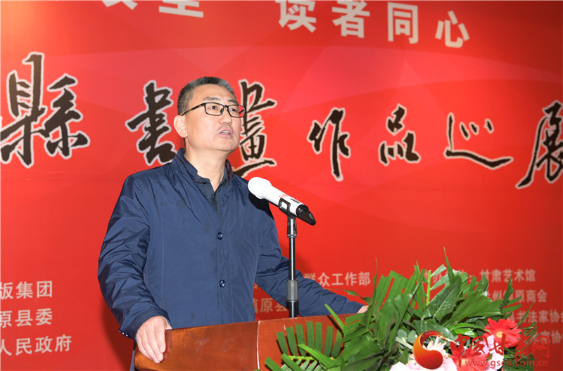 王登渤在致辭中說,素有“書法之鄉(xiāng)”的鎮(zhèn)原,歷史文化悠久。書法、繪畫興始漢代,盛至清末,而喜好書畫之風(fēng)則歷史更久。在歷代書畫家的精心耕耘下,鎮(zhèn)原凝聚起一股濃郁的習(xí)書作畫的藝術(shù)氣息。經(jīng)過百余年的傳承與發(fā)展,如今的鎮(zhèn)原書畫之風(fēng)盛行,無論城鎮(zhèn)鄉(xiāng)村、大家小戶,貼字掛畫蔚然成風(fēng),涌現(xiàn)出的一大批書畫名流,猶若星辰,遍布于全國各地。作為一個縣,此次能在蘭州舉辦書畫巡展,藝術(shù)水準(zhǔn)很高,充分展示出鎮(zhèn)原縣“中國書法之鄉(xiāng)”的深厚文化內(nèi)涵和鎮(zhèn)原縣書畫家們的才情智慧和藝術(shù)品格,也全面展示了鎮(zhèn)原發(fā)展變化的嶄新面貌。希望鎮(zhèn)原縣繼續(xù)加大扶持發(fā)展書畫事業(yè),持續(xù)提升鎮(zhèn)原書畫藝術(shù)發(fā)展水平,也希望涌現(xiàn)出更多的書畫藝術(shù)家,為繁榮當(dāng)?shù)匚乃囀聵I(yè)、助力脫貧攻堅、美麗鄉(xiāng)村建設(shè)作出應(yīng)盡的貢獻。