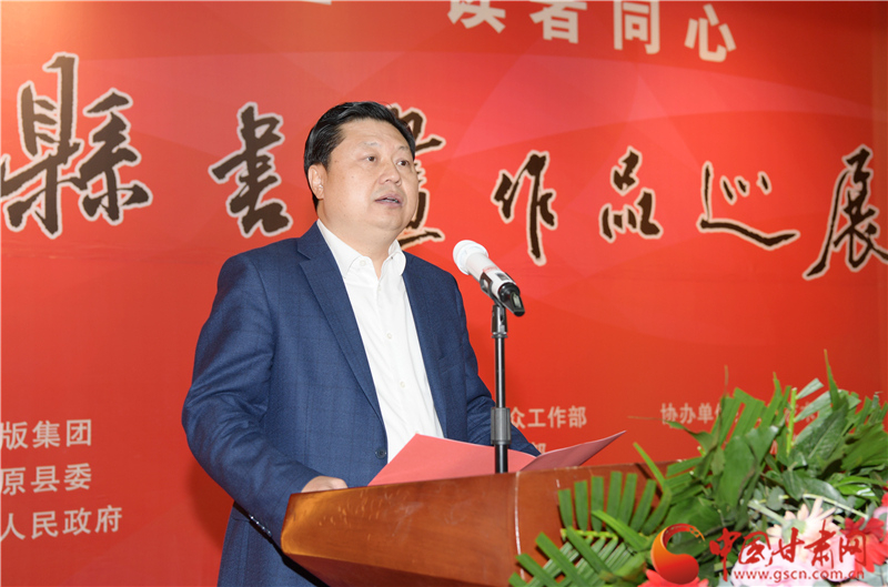 劉永升在致辭中說,鎮(zhèn)原是中國書法之鄉(xiāng),讀者是甘肅文化名片,企縣因扶貧而結(jié)緣,因文化而牽手。自2017年定點幫扶鎮(zhèn)原以來,讀者出版集團著力實施了一批“看得見、摸得著、留得下、有成效”的好項目,探索出一條富有“讀者”特色的幫扶路子。特別是立足文化企業(yè)定位,堅持扶智扶志,通過開展勞動技能培訓(xùn)、幫助改善教育條件、推介宣傳地方資源、建設(shè)“讀者鄉(xiāng)村文化驛站”等一系列卓有成效的工作,切實打好“文化扶貧”牌,既堅定了廣大群眾戰(zhàn)勝貧困的信心和決心,更激發(fā)了貧困群眾依靠雙手、勤勞致富的積極性、主動性。此次與鎮(zhèn)原縣聯(lián)合舉辦書畫巡展,是開展文化扶貧、助力書香社會建設(shè)的務(wù)實之舉,也是提升“文化鎮(zhèn)原”影響力、加快地方文化產(chǎn)業(yè)發(fā)展的積極行動,更是提高貧困群眾文化素質(zhì)、振奮群眾精神風(fēng)貌的重要舉措。