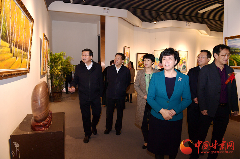 省委宣傳部、省文明辦、省直機關(guān)工委、省國資委、省文旅廳、省文史館、省文聯(lián)、省扶貧辦、省人社廳和定點幫扶鎮(zhèn)原的讀者出版集團等省直部門負(fù)責(zé)人,鎮(zhèn)原縣委副書記張笑陽,縣委常委、宣傳部長賈翠艷,知名書畫家、慶陽籍在蘭各界人士共計600余人參觀展覽。