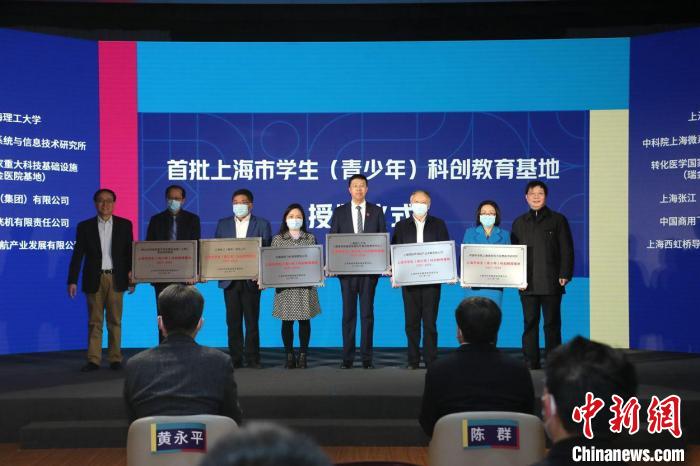 首批上海市學生(青少年)科創(chuàng)教育基地代表獲授牌。 上海市科技藝術(shù)教育中心供圖
