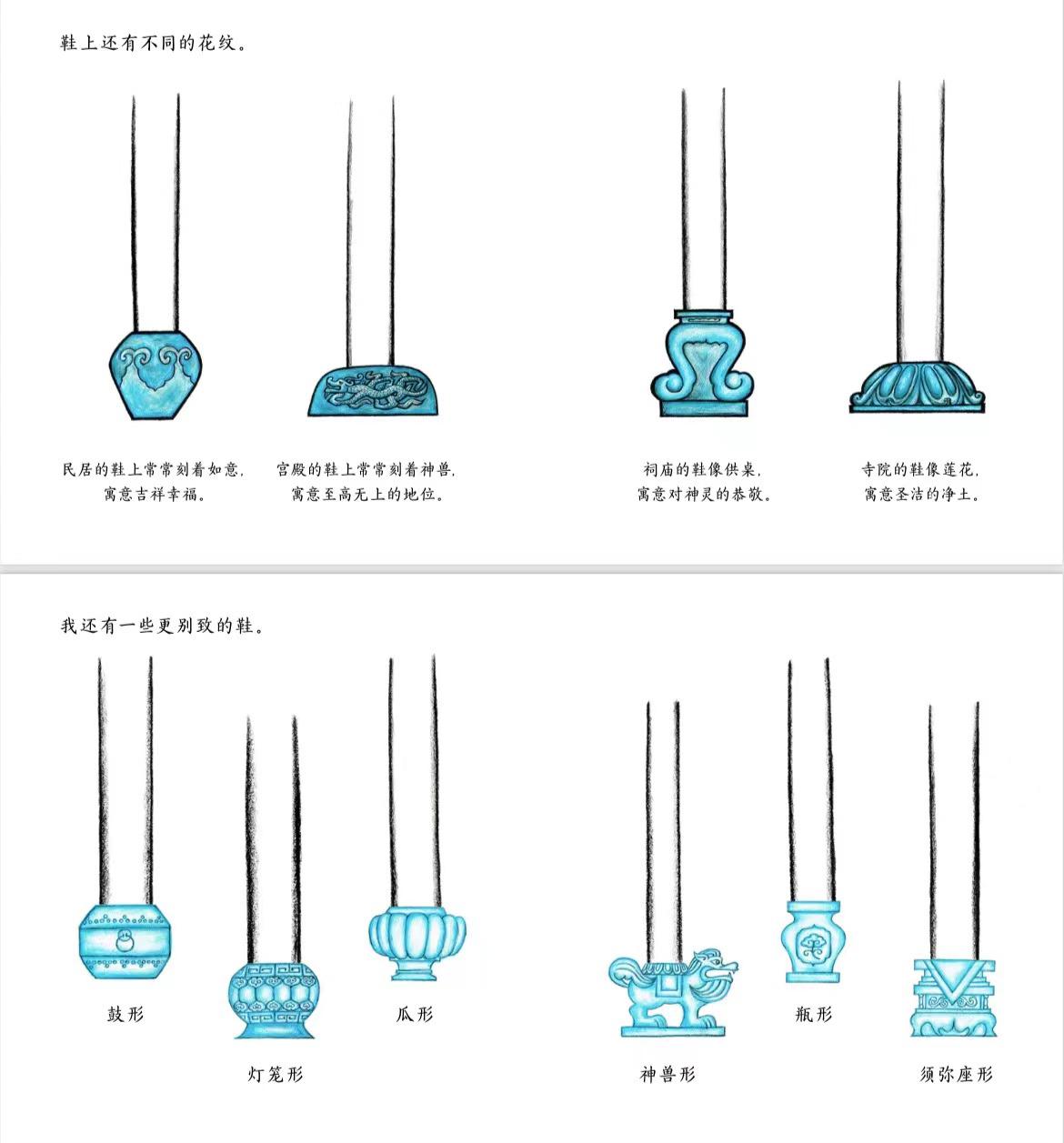 介紹柱礎(chǔ)時(shí),講述中國房子也有很多漂亮的石頭鞋子: