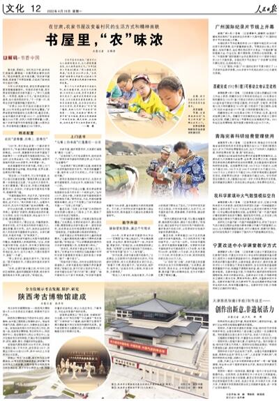 第二十七個(gè)世界讀書日來臨之際,我們循著書香,走近今天的閱讀:從田間邁入云端,農(nóng)家書屋離鄉(xiāng)親們更近了;遍布社區(qū)街巷的公益書房,讓文化服務(wù)更普惠更精準(zhǔn);實(shí)體書店轉(zhuǎn)型發(fā)展,成為綜合性的公共文化空間;有聲閱讀從“聽書”到廣播劇,刷新人們對(duì)“耳朵經(jīng)濟(jì)”的想象……今起,本版推出“解碼·書香中國”系列報(bào)道,聚焦全民閱讀推廣的地區(qū)經(jīng)驗(yàn)、模式創(chuàng)新、業(yè)態(tài)轉(zhuǎn)型,品味充盈中華大地的墨韻書香。