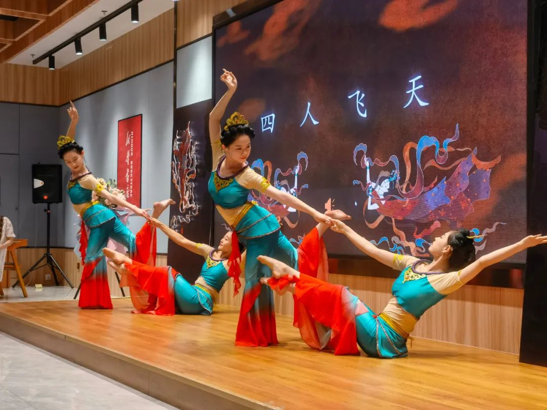 見(jiàn)面會(huì)現(xiàn)場(chǎng),作者介紹了本書(shū)創(chuàng)作歷程,并通過(guò)“形、神、氣、韻”“抻、曲”“舞姿控制”“四臂觀音”“四人飛天”“胡旋與琵琶”等組合精彩紛呈的表演,使讀者更加直觀地了解本書(shū)的主要內(nèi)容和敦煌舞蹈的文化內(nèi)涵,感受敦煌舞蹈?jìng)鬟f出的藝術(shù)價(jià)值、文化素養(yǎng)和無(wú)窮的魅力。