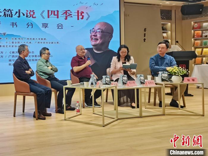 當天,由《南方文壇》雜志主辦的凡一平長篇小說《四季書》新書分享會在南寧市舉行。凡一平攜新書出席,東西、張燕玲、張柱林、李約熱、朱山坡、田耳等作家、評論家以及高校師生、文學愛好者約100人參加。