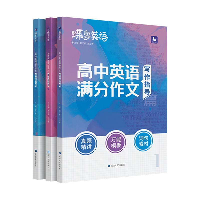 《蝶變英語作文套裝》共3本:分別是寫作指導(dǎo),模擬寫作和滿分作文。其指導(dǎo)內(nèi)容細(xì)分為提綱作文,圖表作文,圖畫作文,開放作文,常用表達(dá)。寫作指導(dǎo)部分對(duì)書信,通知,發(fā)言稿,混合型應(yīng)用文,都有詳細(xì)的指導(dǎo)內(nèi)容。