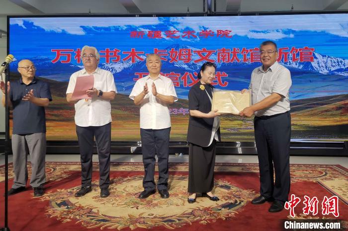 中新網(wǎng)烏魯木齊7月20日電 (胡嘉琛)“木卡姆記譜手稿不應塵封在書柜,應當讓更多人了解它、傳承它。把它交到專心做研究的學者手中,我很放心。”萬桐書之女萬靜20日在新疆烏魯木齊說。當日,萬桐書木卡姆文獻館新館在新疆藝術學院開館,萬靜將萬桐書1952年至1957年間收集整理的木卡姆記譜手稿贈給校方。