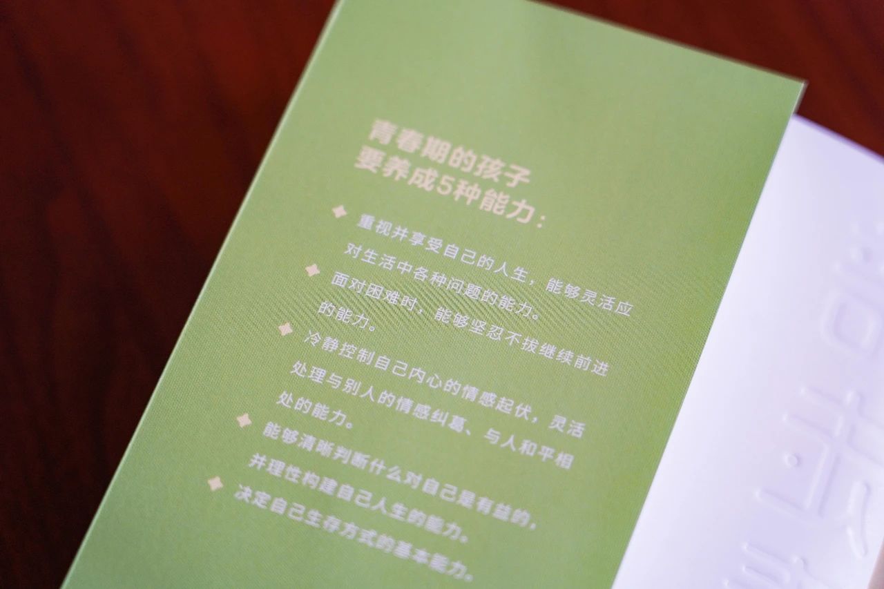 《陪孩子走過(guò)青春期》獨(dú)創(chuàng)性地提出“父母幸福是孩子幸福的基石”這一核心理念,認(rèn)為父母給孩子最好的禮物,就是讓自己成為自立且幸福的家長(zhǎng)。倡導(dǎo)父母應(yīng)該先關(guān)照自我,提升內(nèi)在力量,才能構(gòu)建溫暖、相互理解、共同成長(zhǎng)的親子關(guān)系,營(yíng)造出滋養(yǎng)孩子也滋養(yǎng)父母的家庭氛圍。
