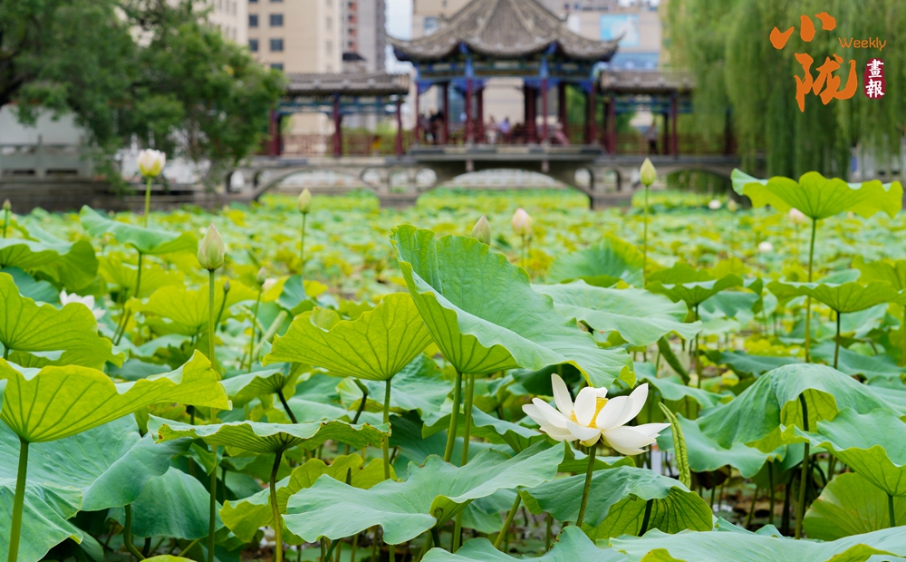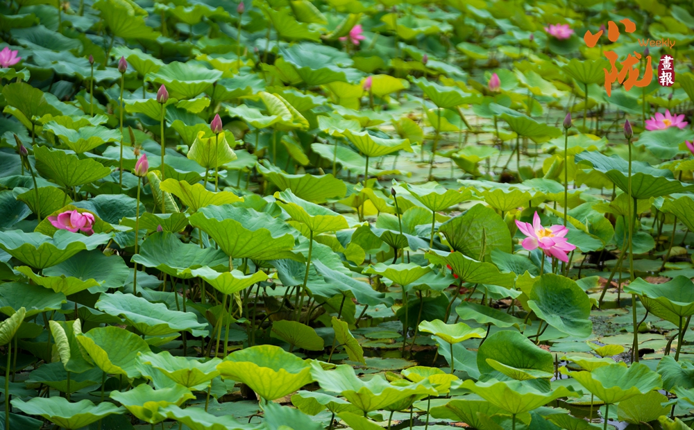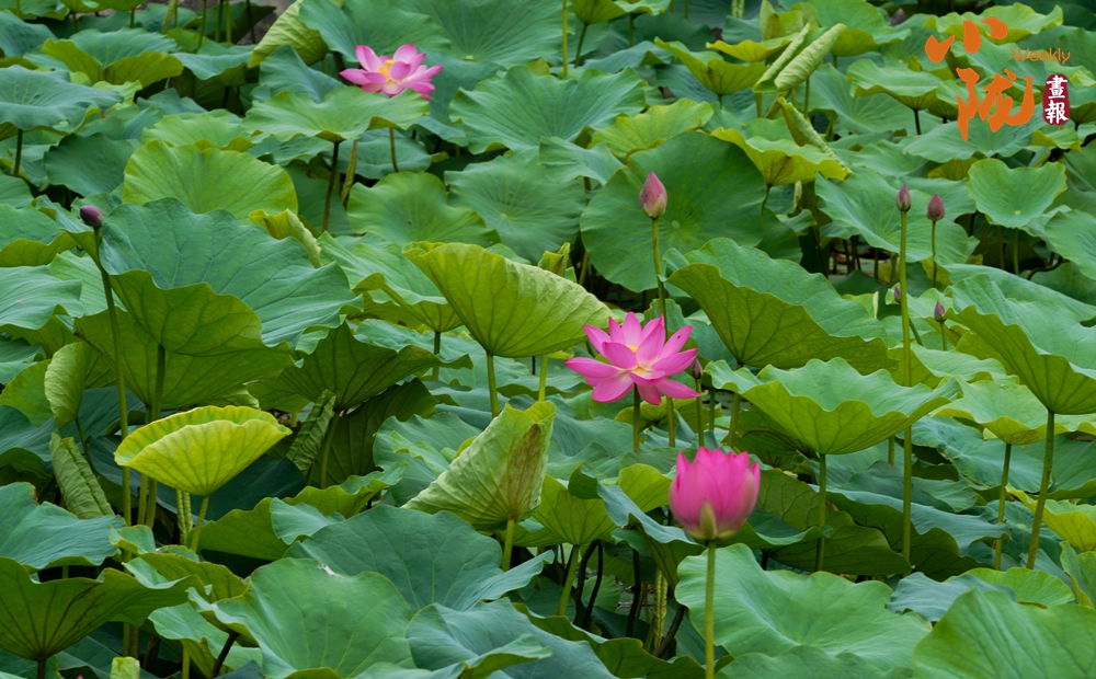 大片的荷葉層層疊疊,一支支荷花婷婷水中,在蓮葉的映襯下展現(xiàn)出更加嬌媚動人的風(fēng)韻,為炎炎夏日增添了幾分詩情畫意,讓前來觀賞的群眾領(lǐng)略了荷葉田田的生態(tài)美景。