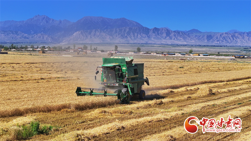 眼下,位于祁連山下的民樂縣南古鎮(zhèn)毛城村800畝連片小麥種植基地上,機(jī)聲隆隆,農(nóng)機(jī)手們駕駛收割機(jī)穿梭往返麥田之中搶收小麥,一派忙碌的豐收景象。近期,隨著民樂縣沿祁連山冷涼山區(qū)小麥迎來成熟季,民樂縣種植的26萬畝小麥進(jìn)入了繁忙的收割期。