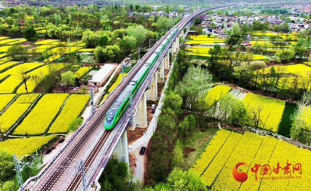 近日,隨著氣溫回升,武都、宕昌白龍江沿岸的油菜花競(jìng)相綻放,迎來(lái)最佳觀賞期,蘭渝鐵路列車在花海中穿梭,宛如一幅絕美的春日畫卷。