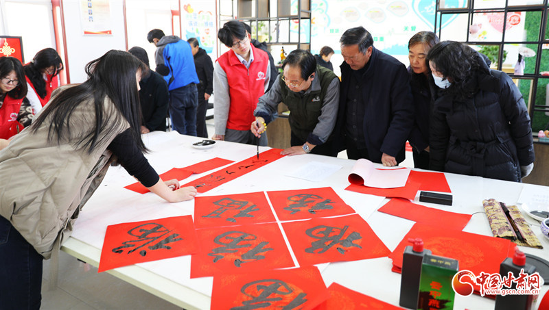 春節(jié)臨近,民樂縣組織群眾文化志愿者服務(wù)隊開展“翰墨迎春”公益文化活動,志愿者現(xiàn)場揮毫潑墨書寫春聯(lián),為群眾書寫春聯(lián)和“福”字,讓群眾在家門口享受“文化大餐”,迎接新春佳節(jié)的到來。